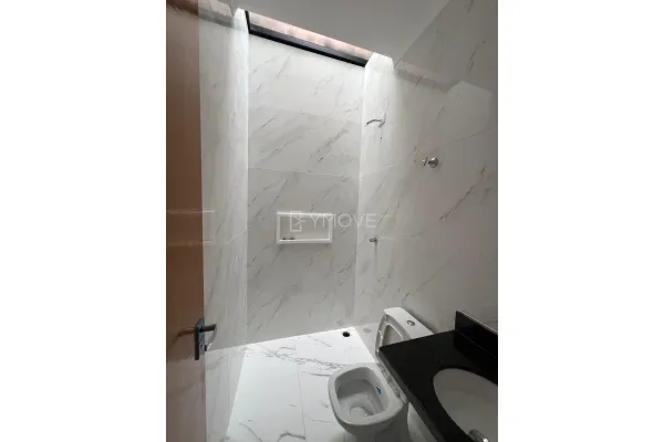 2 Dormitórios (2 Suítes), sala, lavabo, cozinha, quintal, varanda e 2 vagas de garagem.