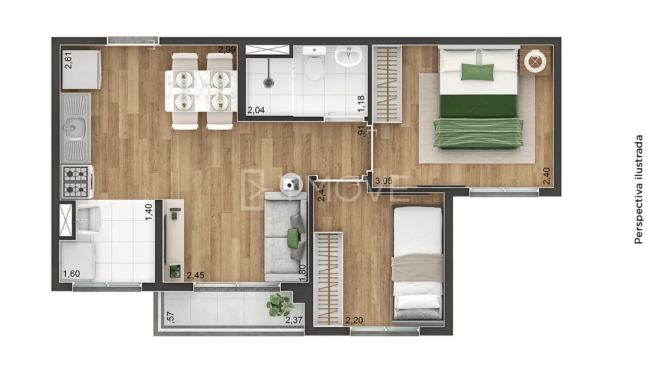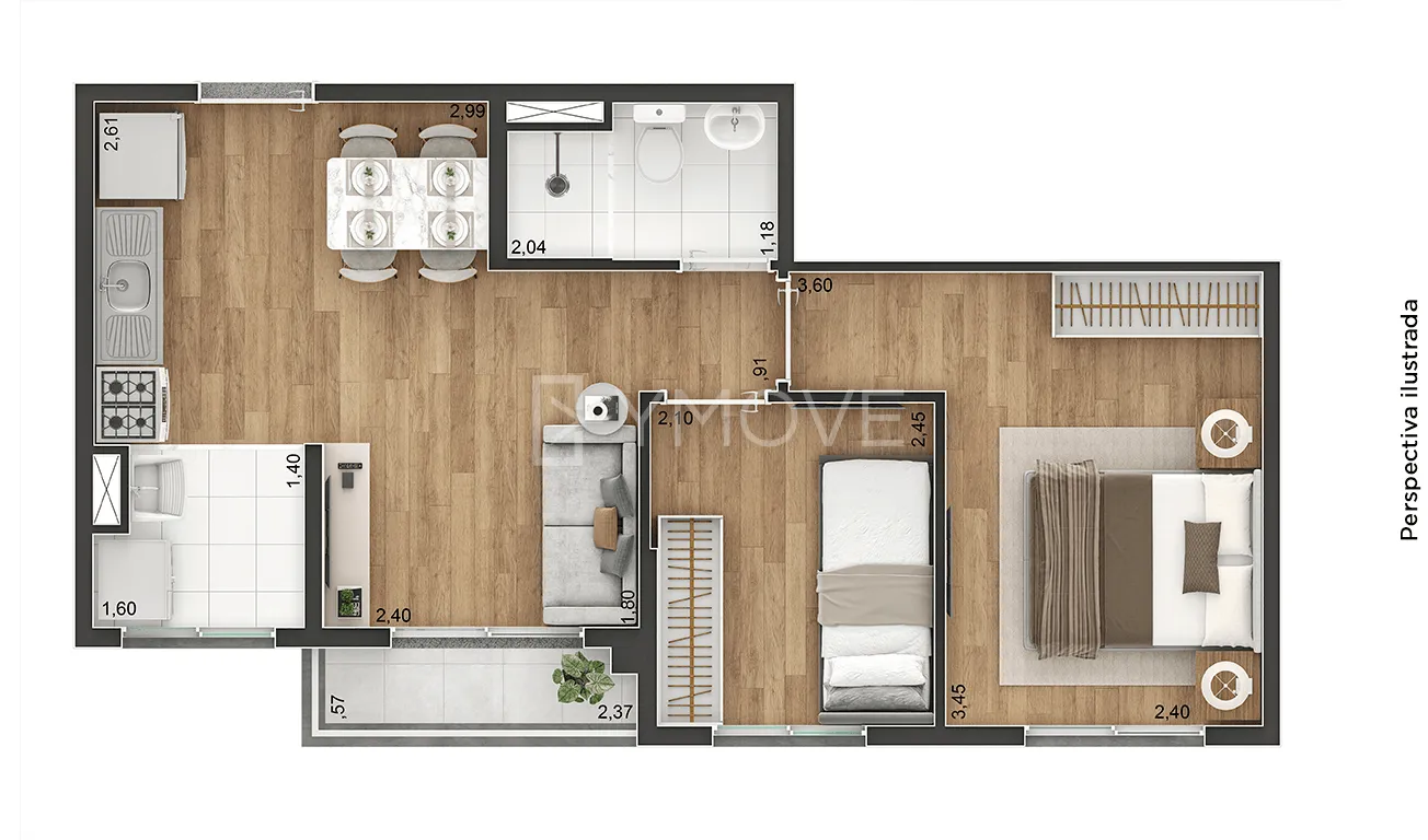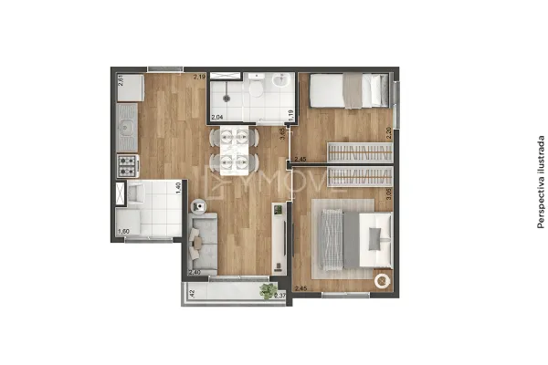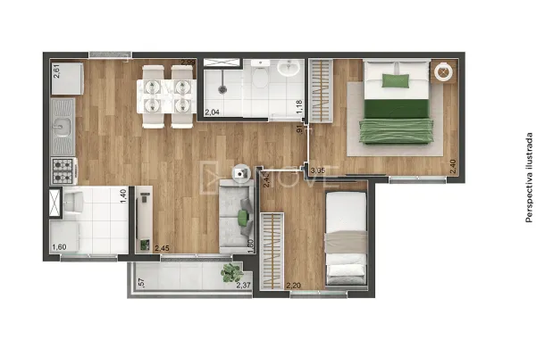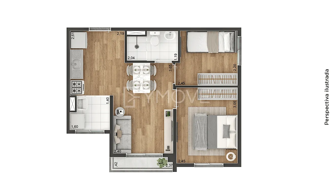 Tipologia 2 dormitórios e terraço - 37 m2 - 384 unidades / 2 dormitórios e terraço - 39 m2 - 32 unidades