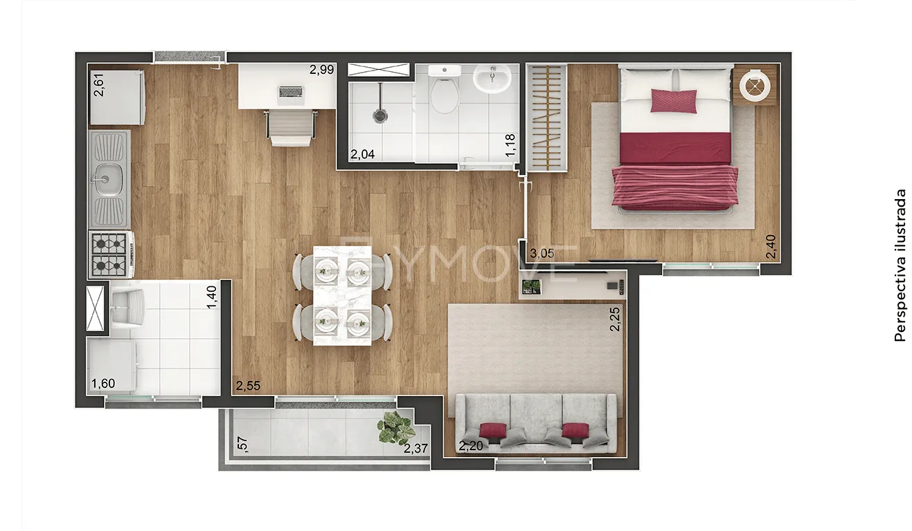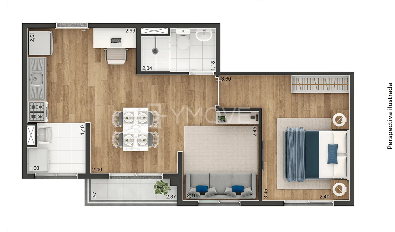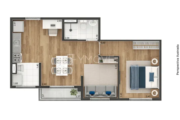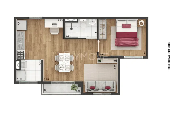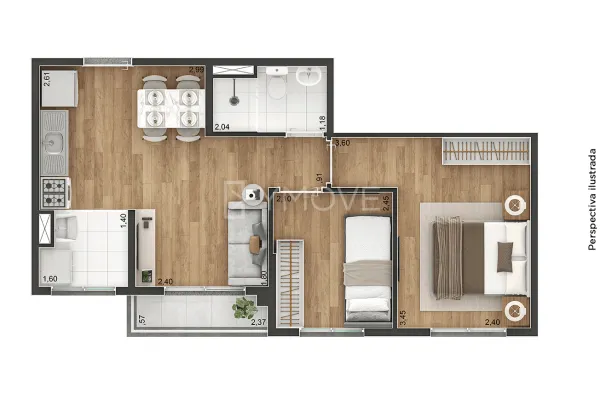 Tipologia 2 dormitórios e terraço - 37 m2 - 384 unidades / 2 dormitórios e terraço - 39 m2 - 32 unidades