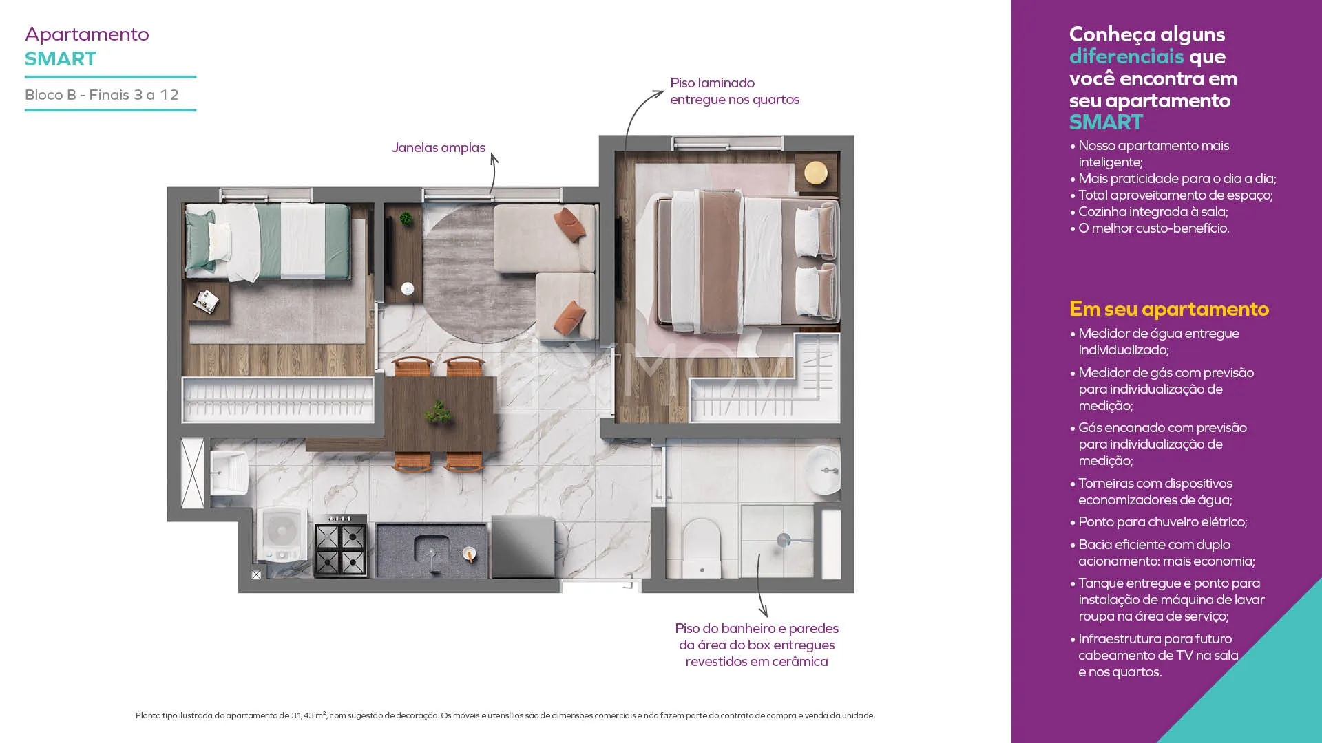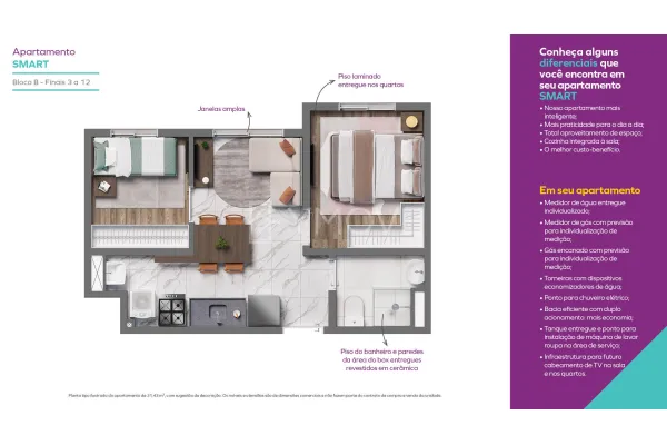 O Belenzinho é um empreendimento com tudo que você sempre sonhou, na Zona leste e com todas as facilidades do Minha Casa Minha Vida. Viva com mais qualidade de vida em um apartamento inteligente com um condomínio com lazer e comodidade. Apartamentos de 1 a 2 quartos.Mobília: