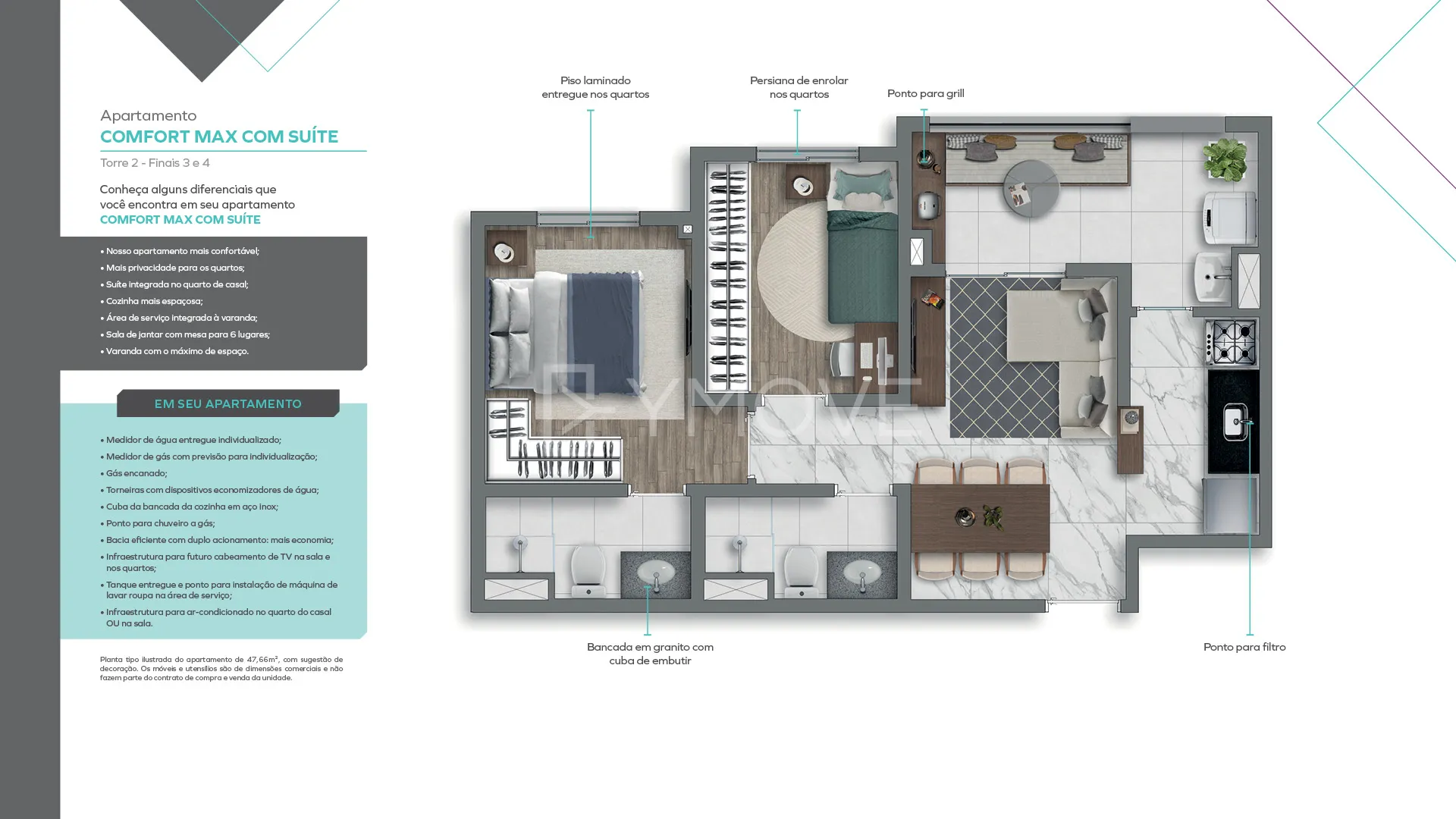 O Prime Vila Prudente possui unidades de 2 e 3 quartos, com opções de suíte, varanda e vaga na garagem. Nele, você também desfruta de diversos espaços de lazer, como piscina, rooftop com churrasqueira, salão de festas, espaço beleza, sala de games, minimercado, coworking, academia e muito mais.O apartamento na zona leste está a 5 minutos da estação Vila Prudente, que conecta as linhas 2 – Verde e 15 – Prata do metrô. Ele também está próximo ao supermercado Yamauchi, Uninove e Hospital Dia, além das avenidas Salim Farah Maluf e Professor Luiz Ignácio Anhaia Mello, que garantem rápido acesso às outras áreas da capital.